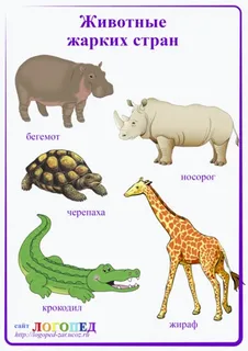 - Спросите ребенка: «Какие животные живут там, где жарко? Чем они питаются? Кого из них ты видел в зоопарке?»